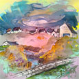 カラフルなヨーロッパの旅のスケッチや風景画。